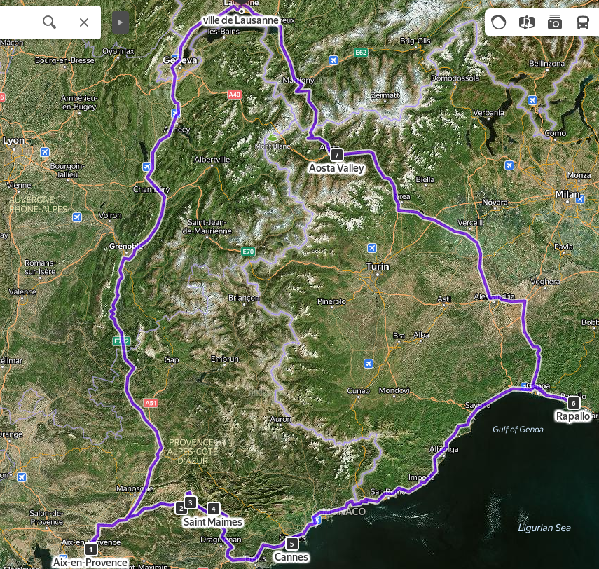 la carte est également approximative, je me souviens juste que le tracé Aix -Nice durait environ 380 km 😉